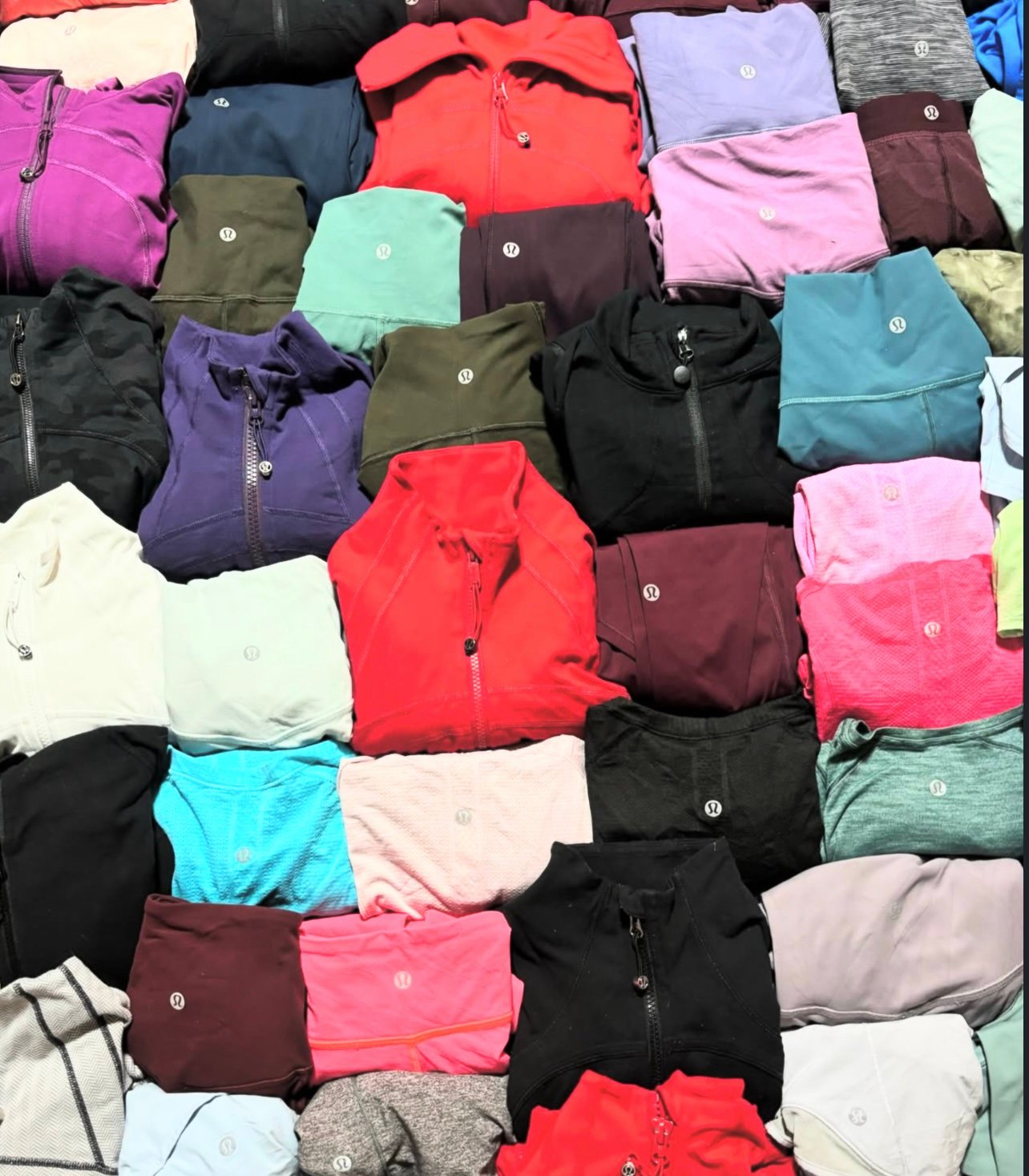 Each Lululemon liquidation pallet contains a variety of activewear items. You can expect to receive leggings, sports bras, tops, shorts, jackets, and other popular Lululemon items. The mix of products varies, so you get a wide selection for your business or personal use.