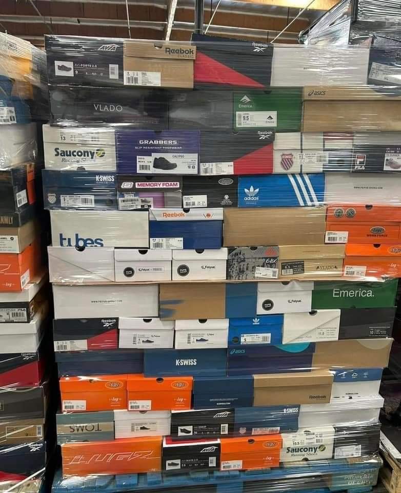 These pallets contain bulk footwear from returns, shelf-pulls, and overstock shipments. They offer strong value for resellers.